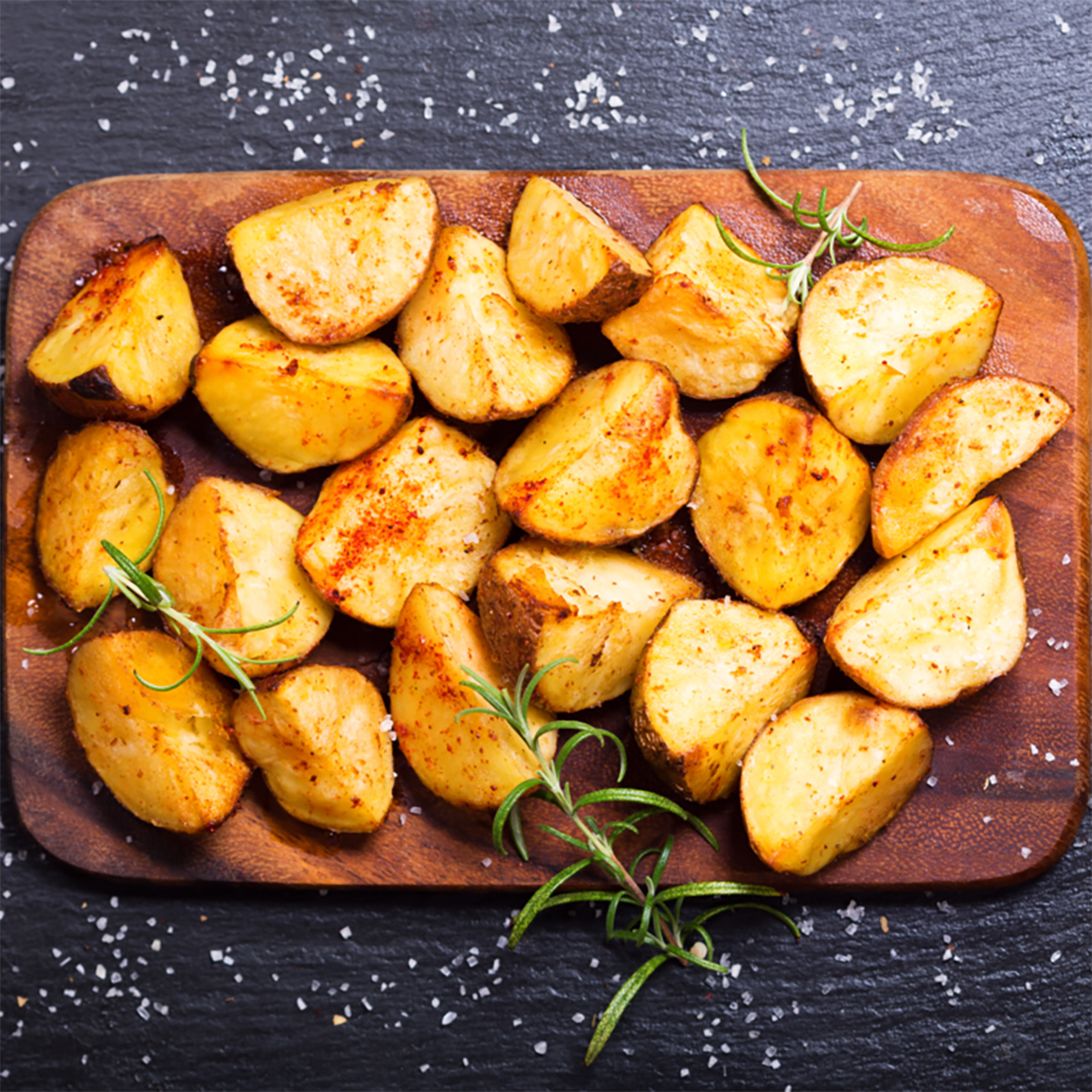 Finish with flair: complete your roast potatoes with smoked sea salt, crispy bacon pieces and a twist of black pepper.